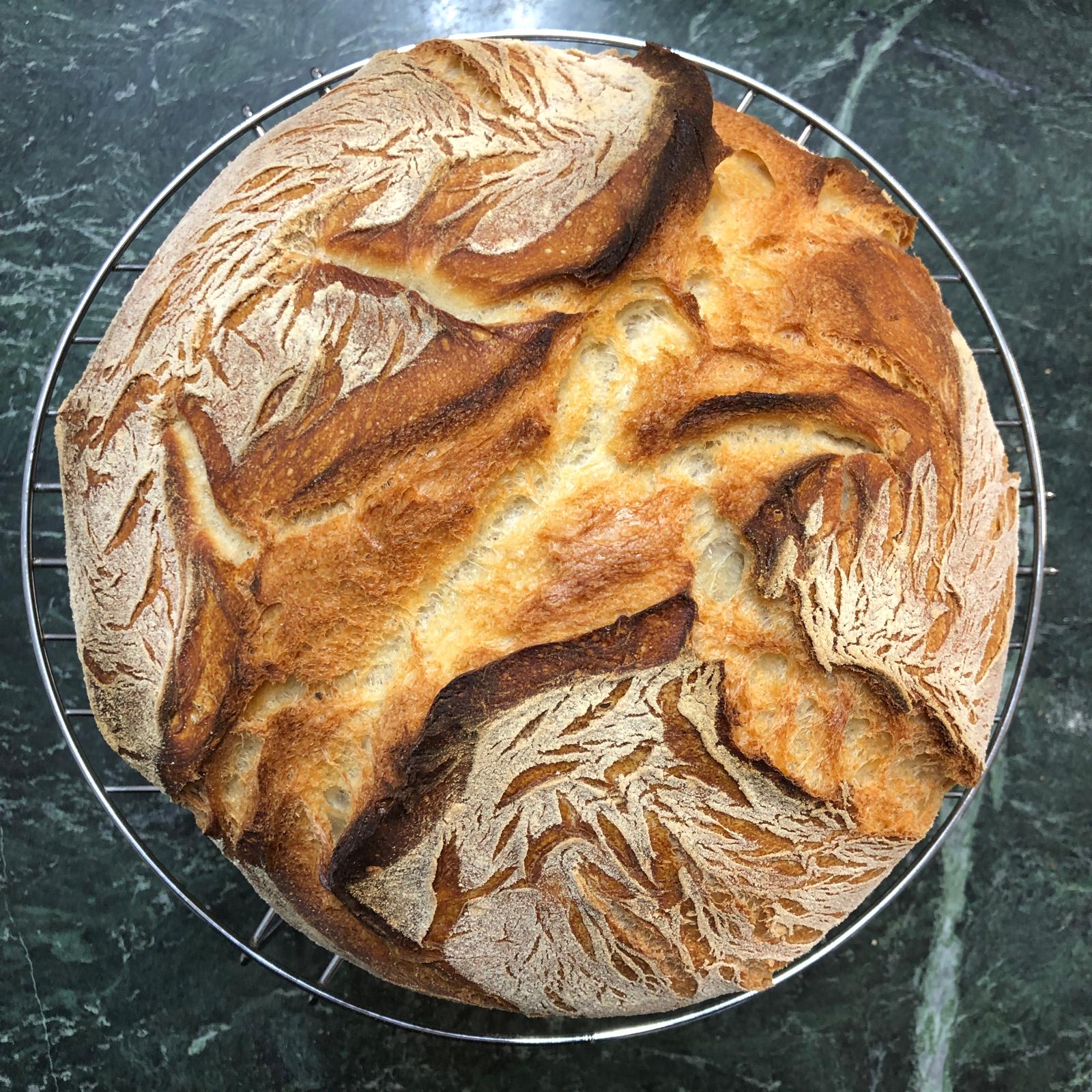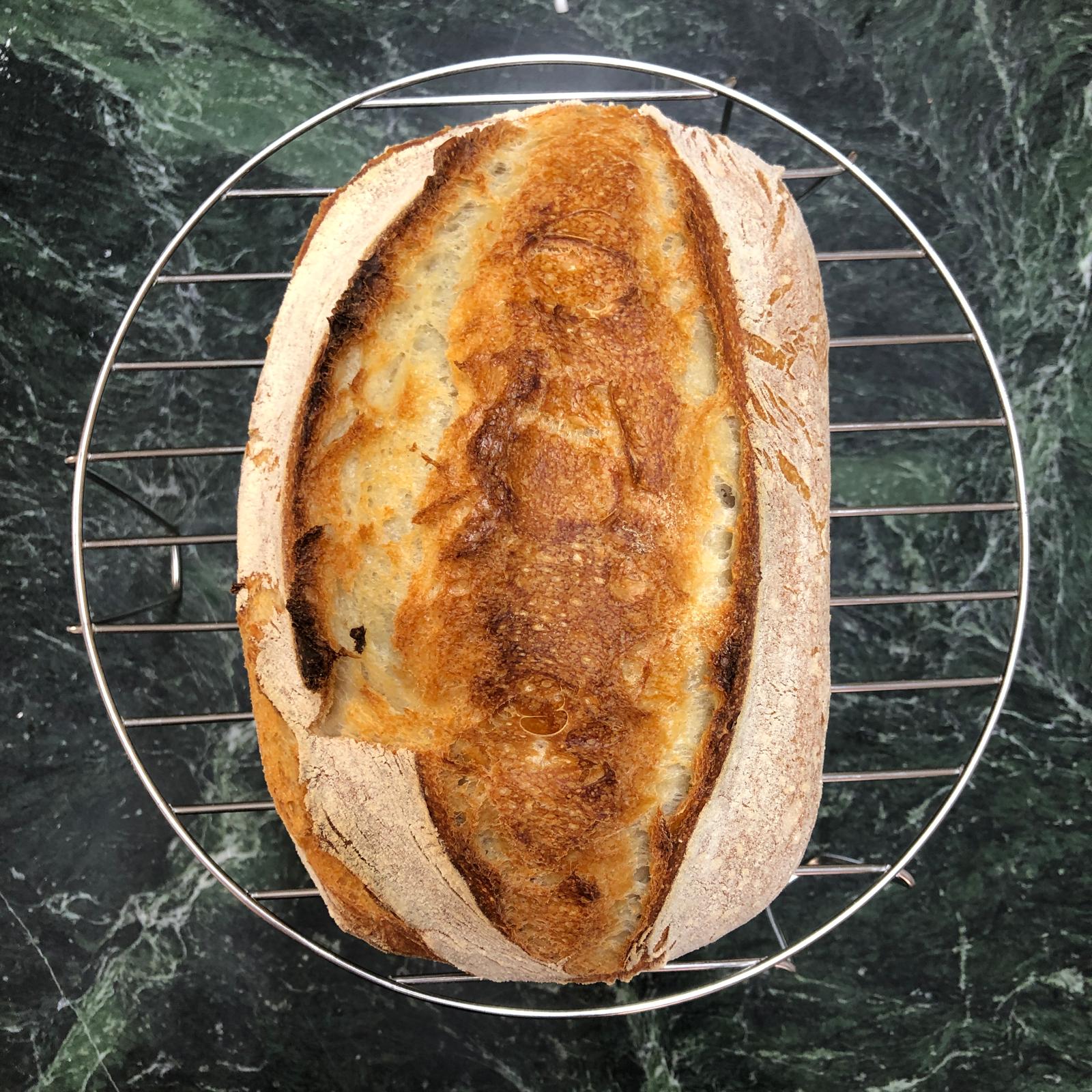 La receta de este pan francés es de Modernist Cuisine. En mi caso doblo las cantidades para aprovechar que enciendo el horno y cocer una bola y dos barrotes. Todavía no me he animado a hacer barras o flautas.